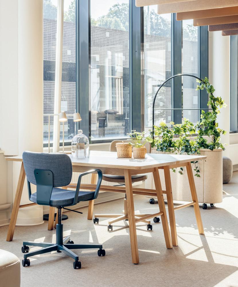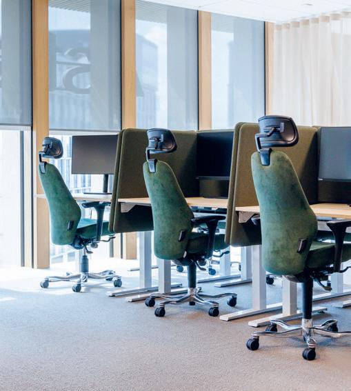 EIN WICHTIGER LEITGEDANKE für die neue Umgebung war Nachhaltigkeit, was unter anderem bedeutete, dass die Möbel aus dem alten Büro wiederverwendet werden sollten. Mit Hilfe von Kinnarps konnten diese inventarisiert und effizient in die neue Einrichtungslösung integriert werden, so dass im Prinzip alles wiederverwendet werden konnte.