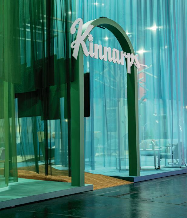 LE CONCEPT DU stand s’inspire de la nature suédoise. D’une part parce qu’il abrite les origines et la production de Kinnarps, et d’autre part parce que la décoration d’intérieur aux formes et couleurs de la nature favorise le bien-être. Les trois sections différentes du stand ont été conçues pour ressembler à un environnement forestier, une plaine et un environnement côtier.