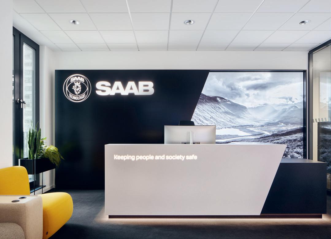 Welkom in het nieuwe kantoor van Saab in Bremen, dat Scandinavisch design en flexibiliteit uitstraalt.