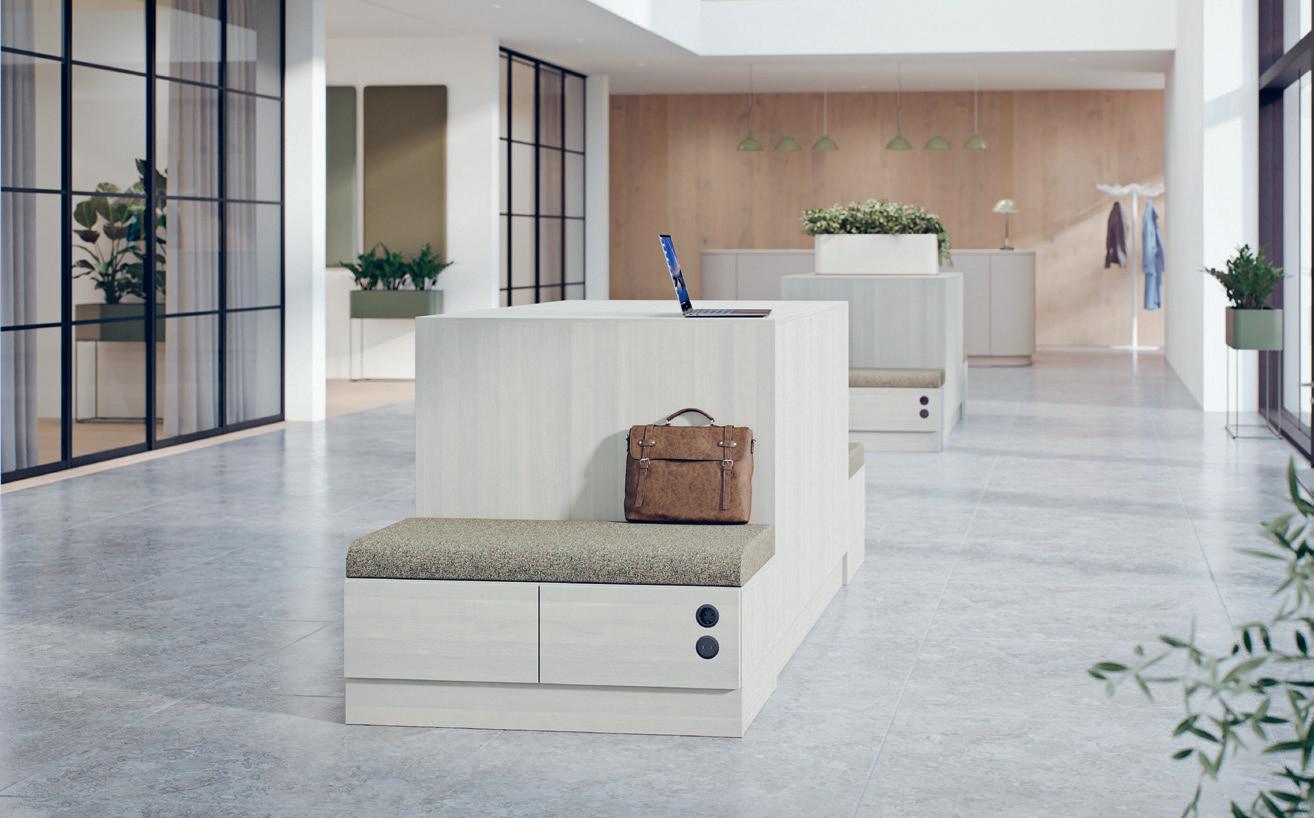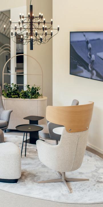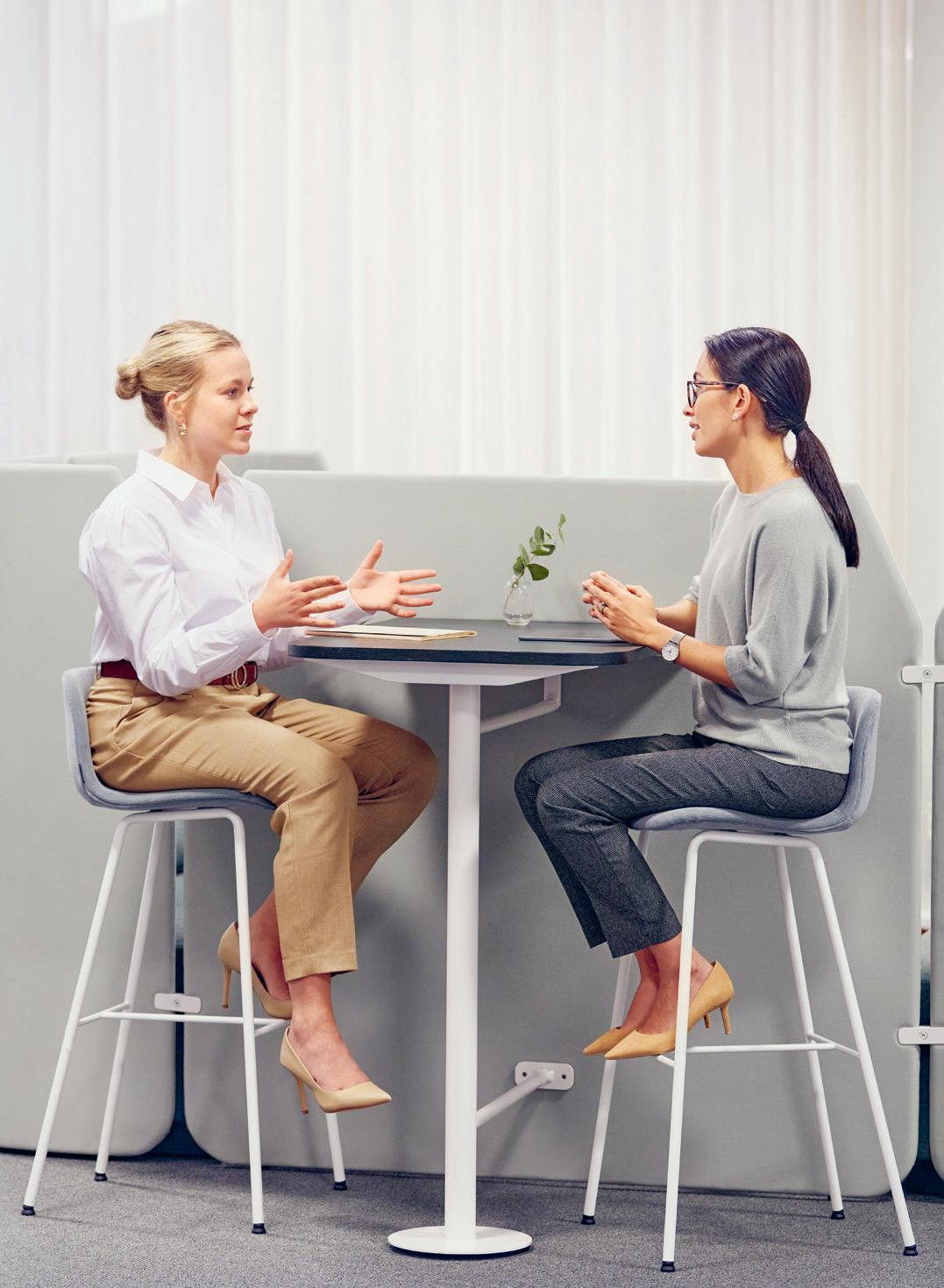 De cultuur van de werkplek floreert in de werklounge. Het is een sociale hub waar je kunt wachten, elkaar kunt ontmoeten, een koffie kunt drinken met collega’s of kunt werken. Volgens gegevens uit onze Next Office ® werkplekanalyse is de werklounge een van de drie meest gewilde ruimtes op kantoor. Bekijk meer trends op p. 36!