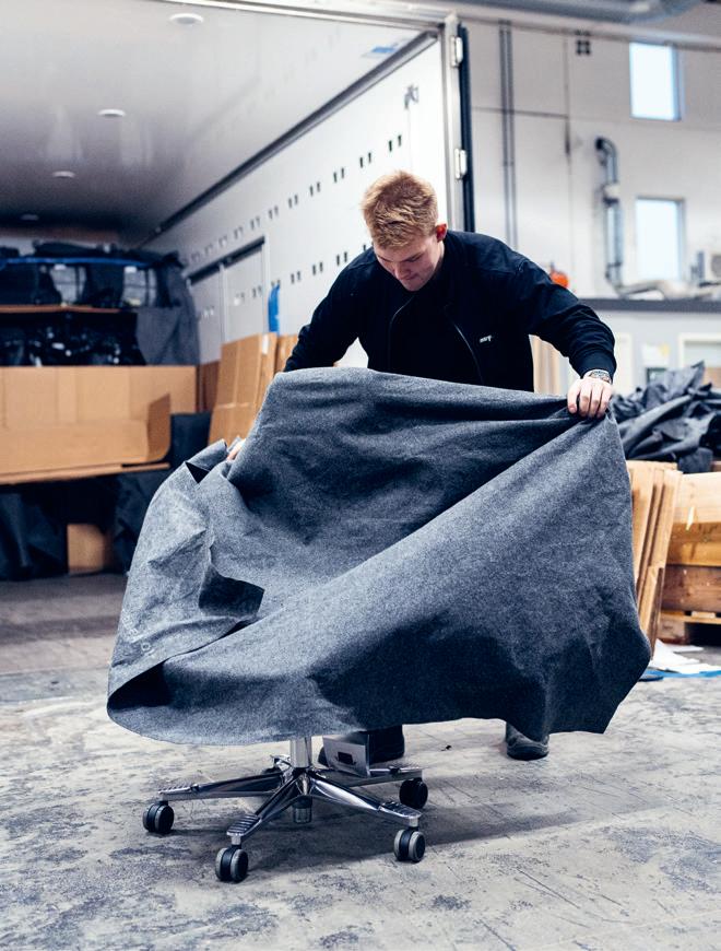 “Als anderen drie vrachtwagens nodig hebben, kunnen wij het met twee”, legt Johan Bjerke van Kinnarps uit. We gaan achter de schermen van het unieke logistieke en leveringssysteem van Kinnarps.