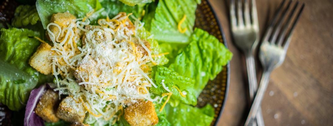 Crisp romaine leaves tossed in tangy anchovy Caesar dressing and Romano cheese, accented by tomato wedges and croutons, then topped with grilled chicken.