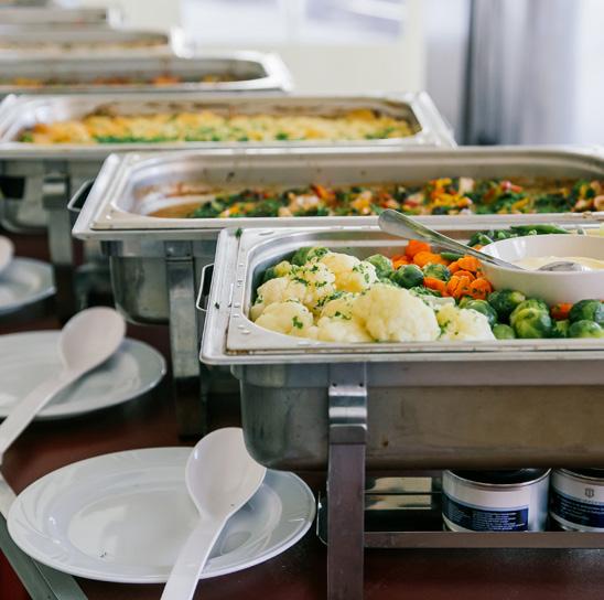 Clear plastic dishware, silverware, and disposable chafers for $3 .50 extra per person