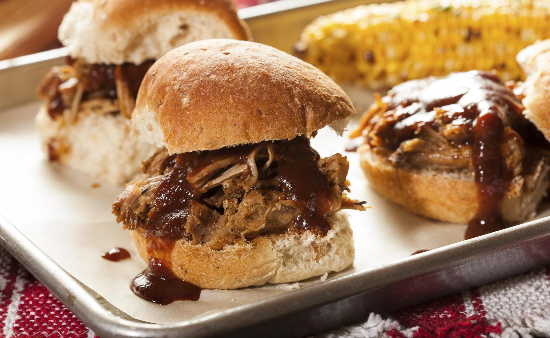 BBQ Pulled Pork or Beef, or Fried Chicken served with Cornbread, Buns, Potato Salad, Coleslaw, and Baked Beans .