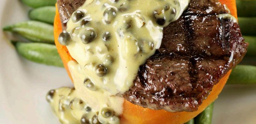 Freshly Scrambled Eggs and a generous helping of Breakfast Potatoes with choice of Sausage, Bacon or Ham Steak . Substitute 4 oz . Sirloin for an additional price per guest . $16 .00