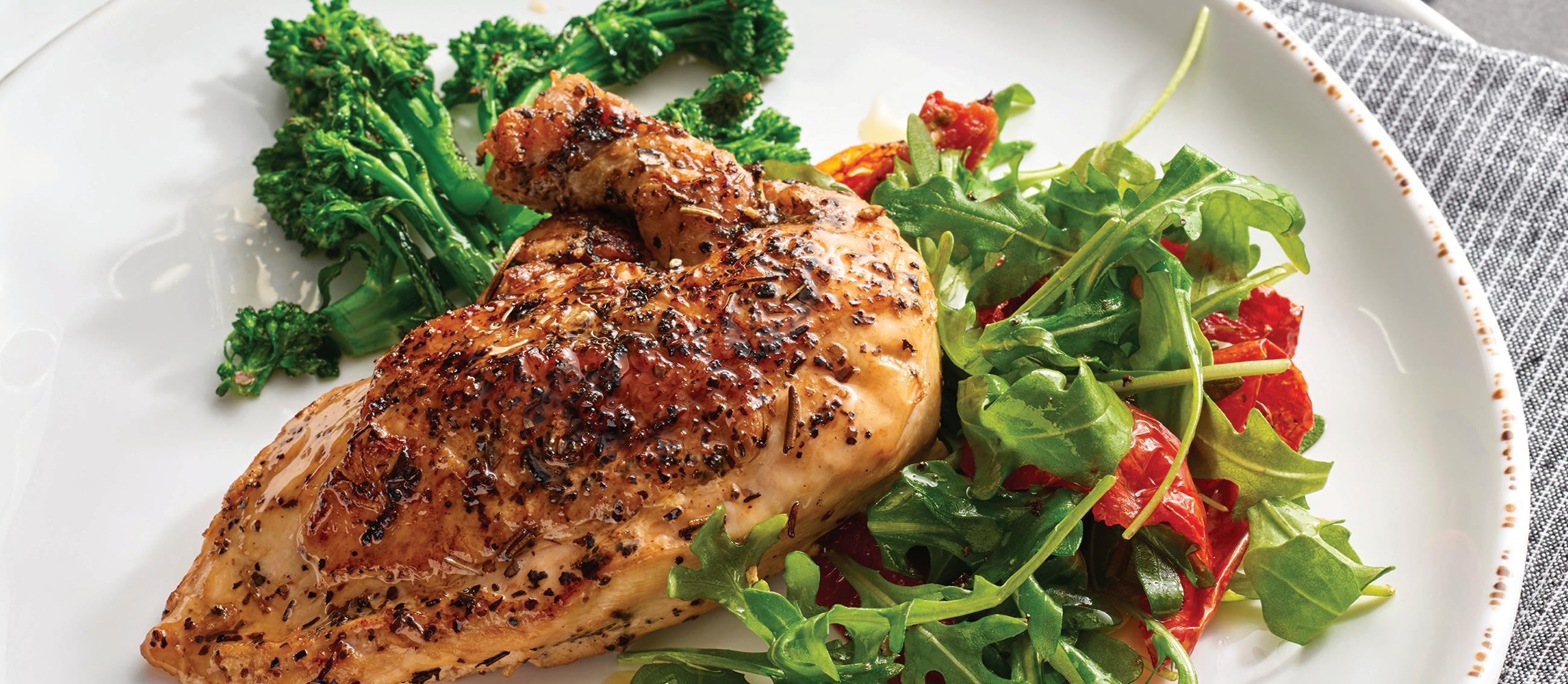 Romaine lettuce, grilled chicken breast, Parmesan cheese, croutons, and Caesar dressing.