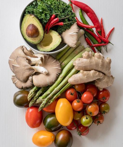 Grilled Balsamic-Marinated Portobello Mushroom with a melange of Fire Roasted Vegetables, Caramelized Onions, topped with Mushroom Ragout