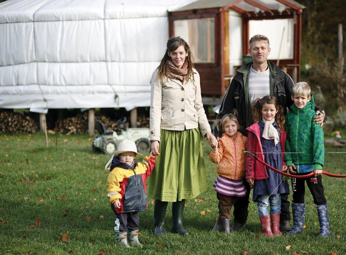Életünk nagy kalandjába három gyermekkel fogtunk, és közben derült ki, hogy úton van a negyedik is. Az ő érkezése abban az évben sok mindent meghatározott. A legidősebb gyermekünk abban az évben lett hat éves, a harmadszülöttünk kettő. A legkisebbet pedig már kész otthonnak kellett várnia, így minden romantikája ellenére is egy nagyon nehéz első évünk volt. A gyerekeket abszolút nem viselte meg, inkább nekünk, felnőtteknek adott nagy feladatot, hogy egyszerre műveljünk kertet, építsünk otthont, árnyékot, konyhát és készüljünk a pici érkezésére. A nagyobbaknak úgy igyekeztünk berendezni a jurtát, mint a szobájukat, az ismerős dolgok, megszokott játékok, tárgyak sokat segítettek. A patakban pancsolás, az erdő pedig bármikor lefoglalta őket, ha kellett.