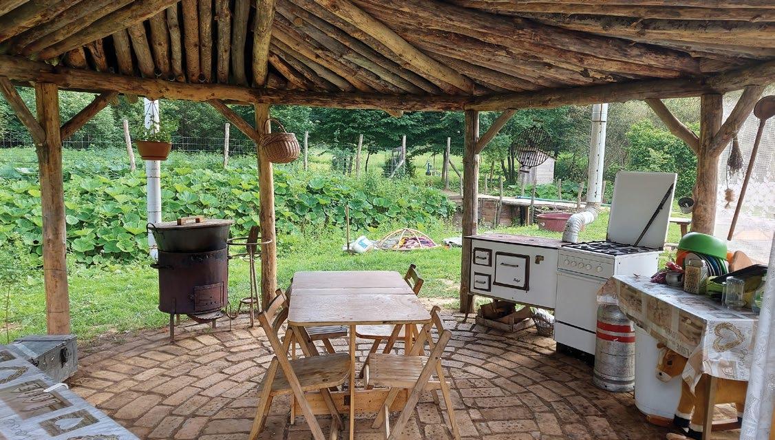 Van egy kádunk, amibe kézi erővel kerül a víz, és egy csövön keresztül a patakba folyik ki. Tehát gyakorlatilag oda, ahová egyébként is folyna, csak közben egy kicsit kölcsönvesszük. A mosogatóvízzel a kertünket öntözzük, és a komposztvécénk tartalma is idővel, egy kis érés után, oda kerül. Minden, ami az otthonunkban van, egy körforgás része: táplál, lebomlik, újra táplál.