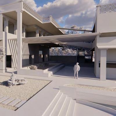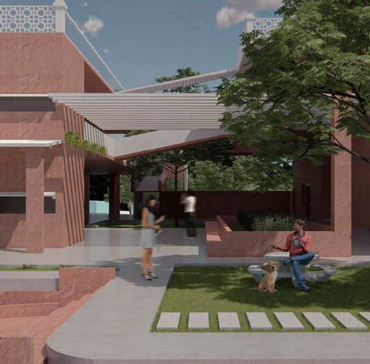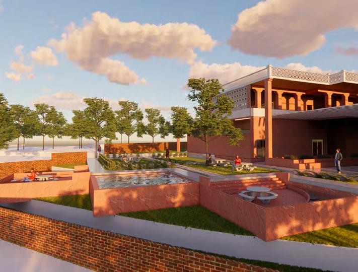 The goal is to create a continuous flow of interactive spaces from the parking lot to the bus stop. Grid planning on contours, interconnected plazas, symmetrical axes, and other features define the Fatehpur Sikri complex.