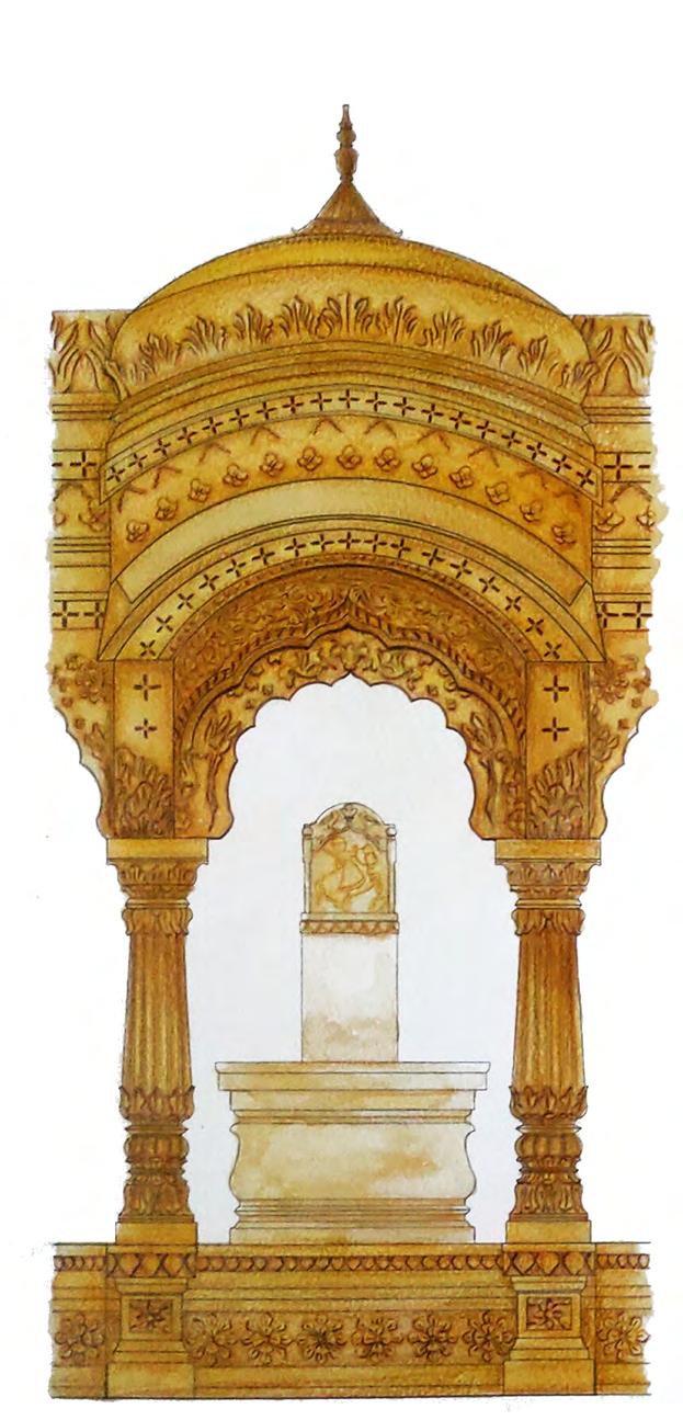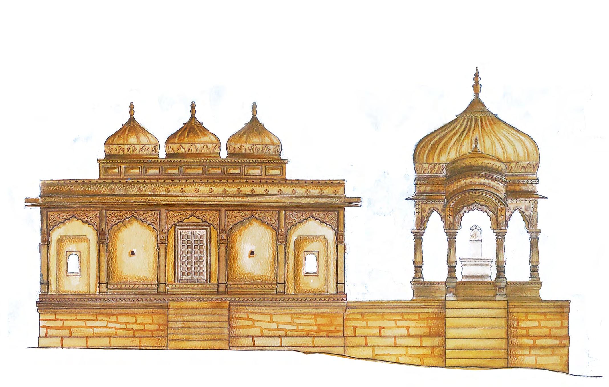 The marble plaque seen in the Chhatri and the cuboidal structure describe the way of the death, of the ruling king.