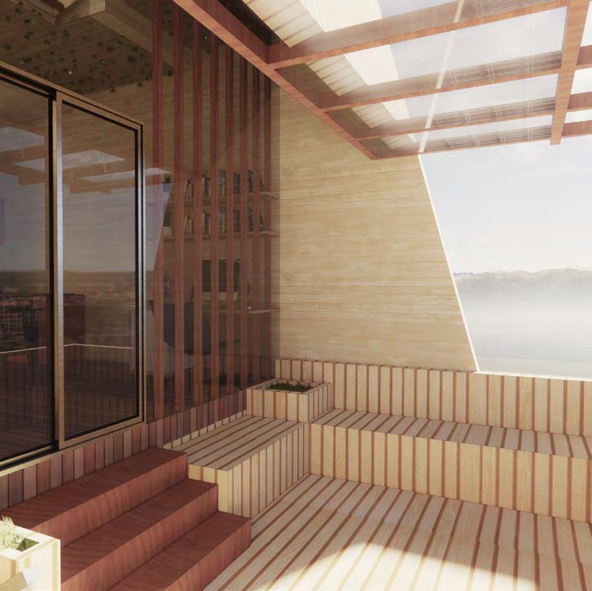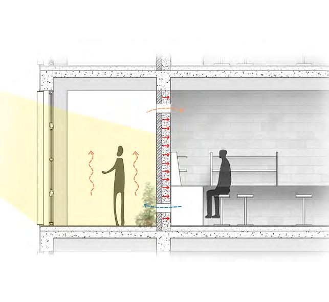 An adaptive comfort band was developed in accordance with ASHRAE 2019 standards for the specific site, which allowed more hours to fall into the comfort temperatures decreasing the need for HVAC.
