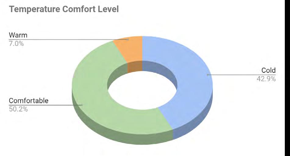 After the initial analysis, It was found that for our case around 26.7% of the operative hours the climate is comfortable and can function sans the use of any conditioning system besides the use of ceiling fans or opening of windows.