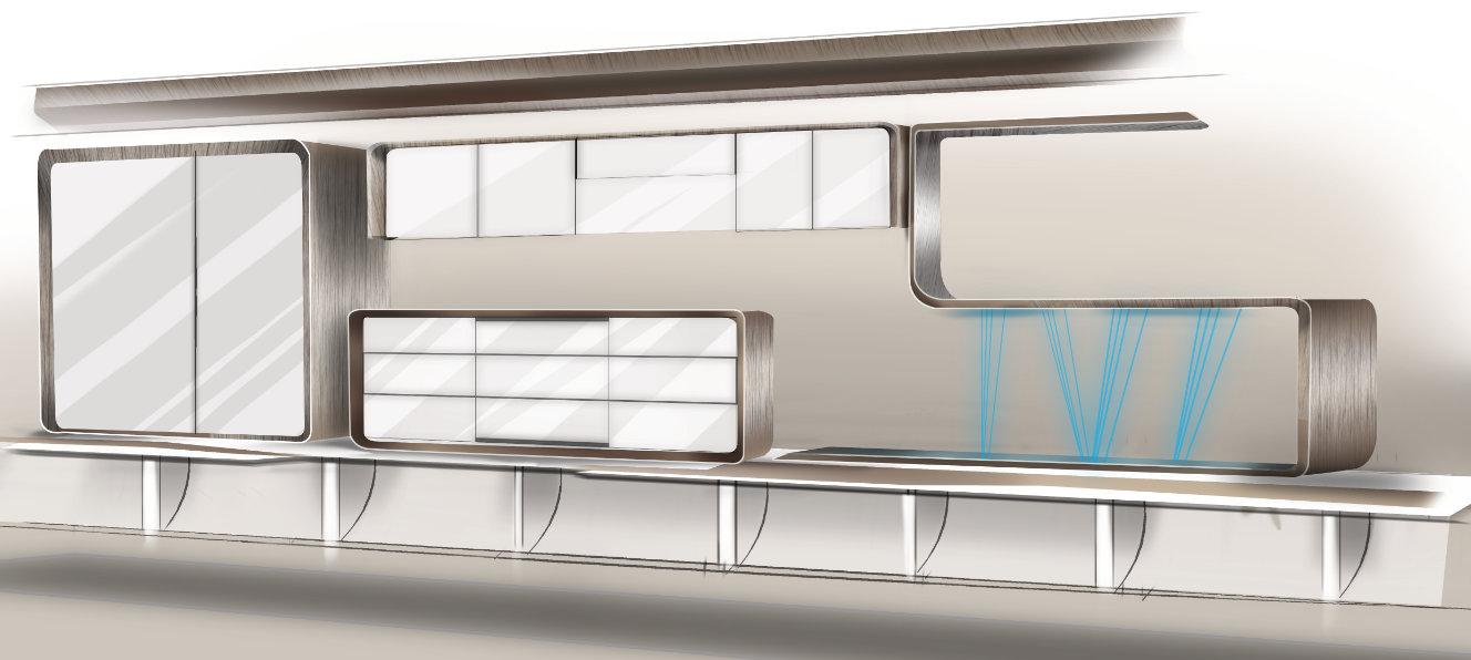 Textures are used to create the feeling of exploration within the interior. As humans we have a natural need to explore our surroundings, this interior allows the user to do just that. Contrasting textures can be used to identify various user controls.