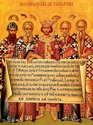 Erstes Konzil von Nicäa (325): Kaiser Konstantin entrollt den Text des Nicäno-Konstantinopolitanum.