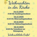 Wir laden Familien mit Kindern herzlich ein zur Weihnachtsfeier am 24. Dezember um 16 Uhr. Auch die Kleinsten sind zu dieser halben Stunde mit Musik, Gesang und einer Weihnachtsgeschichte in Bildern zum Mit-nach-Hause-Nehmen willkommen.