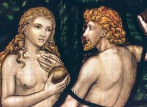 TITELSEITE: Adam und Eva, Glasfenster in der Kathedrale von Gloucester. Shutterstock
