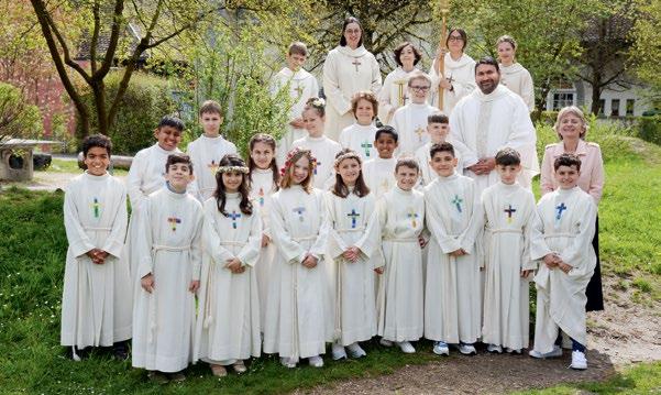 Malo von Känel, Gabriela Maciel, Enya Blaser, Elias Ziehl, Senan Lloyd, Diego Vogelsang, Rafael Bänninger, Maila Grolimund, Luana Roth. Paula Di Mattia war am Weissensonntag krank und wird ihre Erstkommunion im Gottesdienst von Fronleichnam feiern.