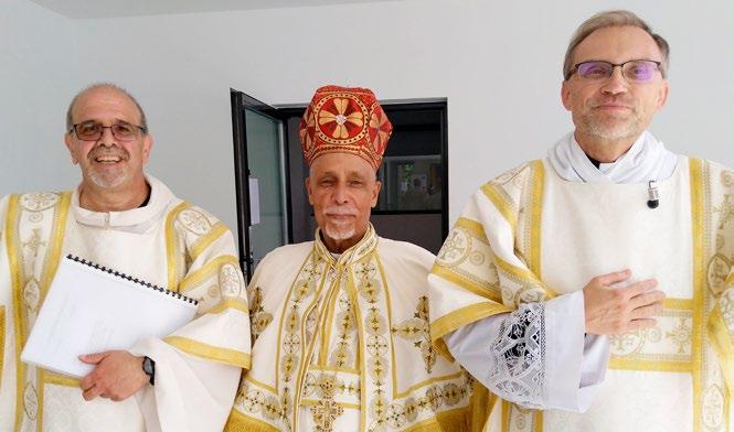 Bischof em. Kyrillos am Patrozinium in Lenzburg AG am 13.06.2021 mit dem Italienerseelsorger Luigi Talarico und Pfarrer Roland Häfliger (rechts).