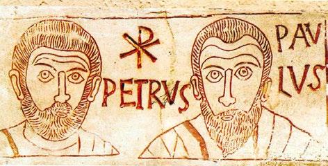Petrus und Paulus als Gravur in einer römischen Katakombe.