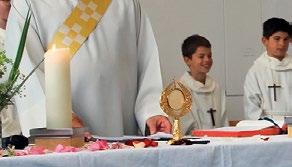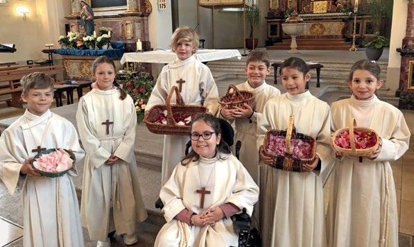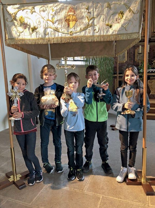 Nach langer Zeit konnte der Fronleichnamsgottesdienst wieder einmal nicht im Freien bzw. auf dem Dorfplatz, sondern in der regengeschützten Turnhalle gefeiert werden. Auch die Prozession musste ausfallen, sodass die Erstkommunion- und Blumenkinder nicht den Weg, aber wenigstens den Altar dekorieren konnten.