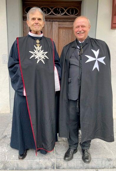 Der Präsident des Malteserordens Schweiz, Martin von Walterskirchen (l.), mit dem Kommendator der Schweizerischen Kommende des evangelischen Johanniterordens, Daniel Gutscher (r). Beide tragen den traditionellen schwarzen Ordensmantel mit dem achtspitzigen weissen Kreuz.