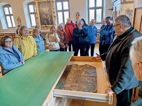 28 Mitarbeitende unseres Pastoralraums unternahmen am Freitag, 31. Mai, eine Fahrt ins Blaue, wie üblich von Peter Gürber organisiert. Bei denkwürdig kaltem, windigem und regnerischem Wetter war das Chorherrenstift St. Michael in Beromünster unser Ziel. Propst Harald Eichhorn führte uns durch die Stiftskirche, in die kleine und die grosse Sakristei und in die Krypta. Dabei zeigte er uns viele Gewänder und Utensilien und wusste unglaublich viel Historisches und Architektonisches über das Stift zu erzählen.
