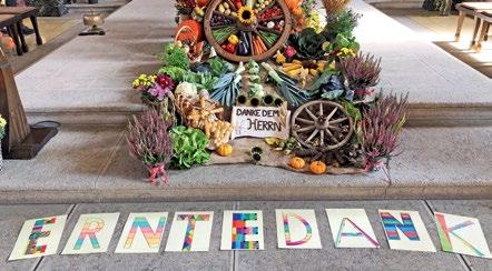 Alle sind eingeladen, Körbe mit Früchten, Gemüse o. ä. mitzubringen und auf die Stufen vor den Altar zu stellen. Kinder können ihre Körbe beim Einzug mittragen. Die Erntegaben werden im Gottesdienst gesegnet und dürfen nachher wieder mit nach Hause genommen werden.
