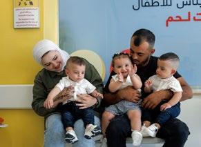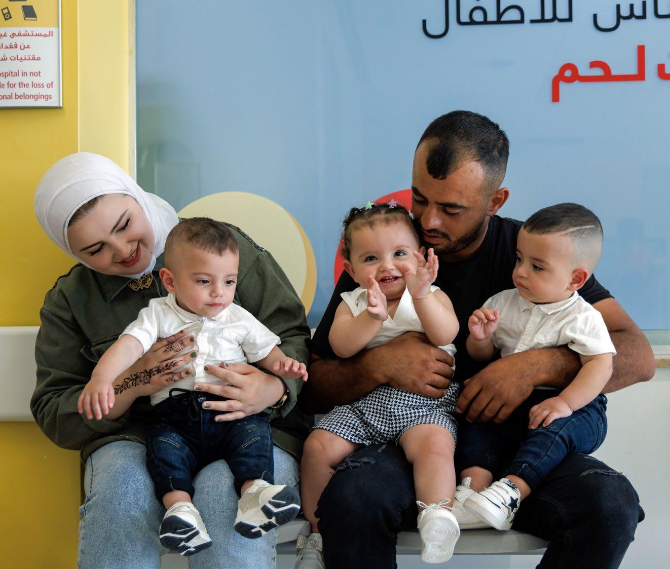 war meine Schwiegermutter zu ängstlich, die Drillinge zu baden. Sie hat schon viele Kinder grossgezogen, aber meine waren so winzig», erinnert sich die Erstlingsmama. «Ich dagegen war selbstbewusst, weil ich das im Caritas Baby Hospital gelernt habe.» Der selbstbewusste Umgang Amiras mit dem Trio hat sich längst auf den Rest der Familie übertragen. Heute, erzählen die Eltern, schlafen die beiden Jungs im Wechsel bei der Oma. Auch die Nachbarschaft unterstützt das junge Paar nach Kräften. Das Kinderspital Bethlehem hat den Drillingen nicht nur das Leben gerettet, sind Amira und Bahjat Rabab’a überzeugt. Die fundierte medizinische und soziale Unterstützung hat ihnen den schwierigen Start ins Familienleben so leicht wie möglich gemacht. «Das Spital ist vielleicht weit weg», sagt der Vater, «aber letztlich spielt die Entfernung keine Rolle, wenn es um die Gesundheit der Kinder geht.» Und da gebe es nun mal «nichts Besseres als das Kinderspital Bethlehem». Das Paar ist glücklich mit seiner Entscheidung, ihr dreifaches Elternglück in die Hände der Bethlehemer Spezialisten gelegt zu haben. Die Freude an den sich immer besser entwickelnden Kindern ist ihnen anzumerken.