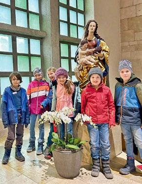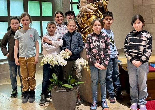 Die Kinder in alphabetischer Reihenfolge: Anja, Elina, Evan, Glen, Julia, Lean, Leandro, Len, Leona, Levin, Milena, Rémy, Shayenne, Svenja, Tiae-Elena, Tim. Claudia Ratheiser, Katechetin