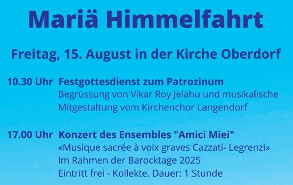 Donnerstag, 14. August 14.30 Uhr, Alterszentrum Kastels 16.00 Uhr, Alterszentrum am Weinberg (beide ref.)