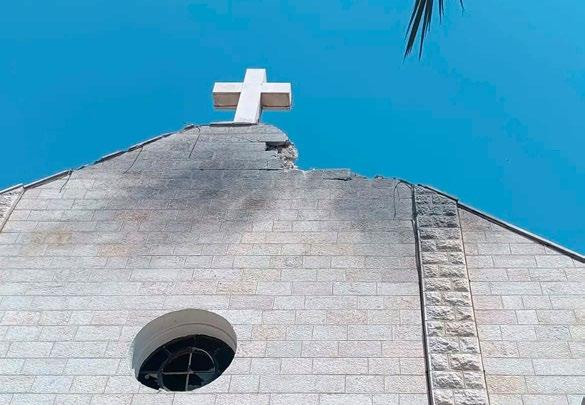 Die durch einen Luftangrifft am 17.7.2025 beschädigte Kirche in Gaza.