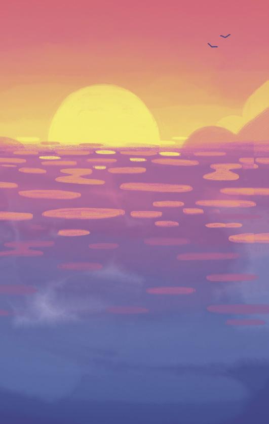 Vettä. Pelkkää vettä. Merta ja taivasta ja merta ja taivasta ja merta ja taivasta. Ei veneitä. Ei venesatamaa.