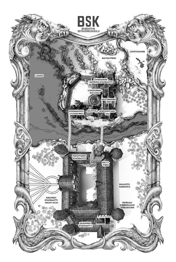 Jokainen navarrelainen upseeri, riippumatta siitä, onko hän valinnut tulla koulutetuksi parantajaksi, kirjuriksi, jalkaväen sotilaaksi vai lentäjäksi, koulitaan näiden julmien muurien sisäpuolella kolmessa vuodessa huippuunsa hiotuksi aseeksi, jonka tehtävä on suojella vuoristoisia rajojamme Poromielin kuningaskunnan ja sen aarnikotkalentäjien väkivaltaisilta tunkeutumisyrityksiltä. Heikot eivät selviä täällä, etenkään lentäjien kvadrantissa. Lohikäärmeet pitävät huolen siitä.