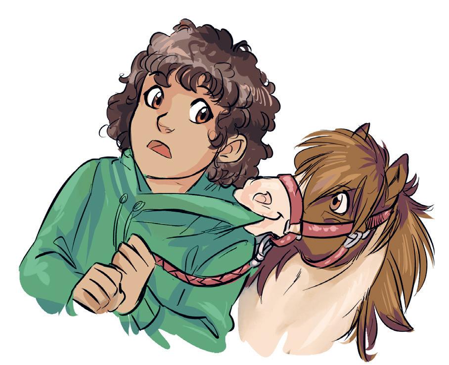 Silloin punaiseksi maalatun tallin ovesta astelee nuori poika, jolla on tumma iho ja kikkarat hiukset.
