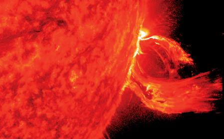 Protuberanssit näyttävät usein silmukoilta. Niitä syntyy, kun Auringon pinnalta syöksyy avaruuteen kaasuja, jotka viilenevät ja putoavat sitten takaisin.