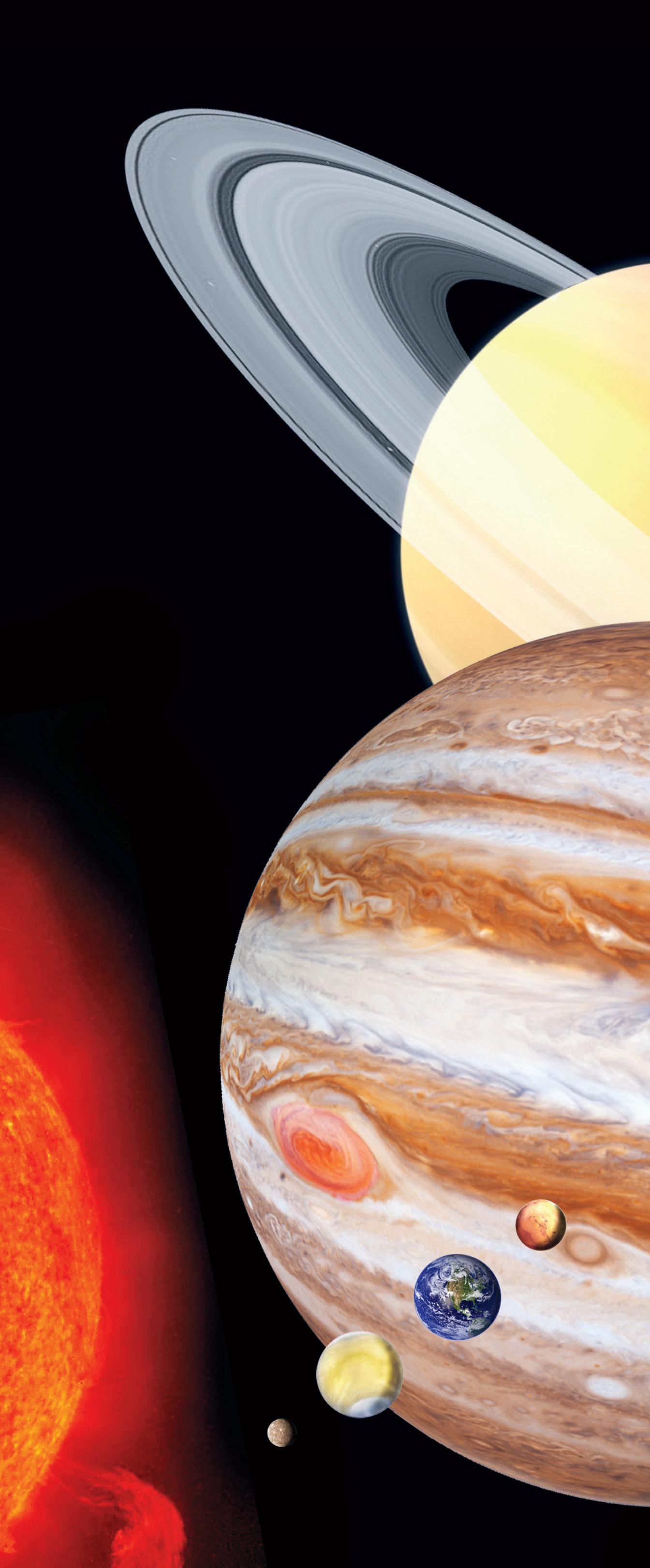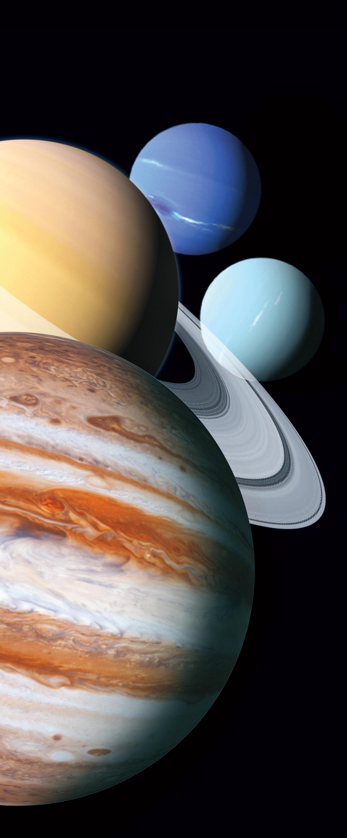 Jäät, nesteet ja kaasut työnnettiin aurinkokunnan viileämpiin ulko-osiin. Siellä painovoima veti ne kasaan, ja niin syntyivät suuret ulkoplaneetat: Jupiter, Saturnus, Uranus ja Neptunus.