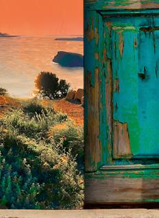 omaisista taloista ja nostaa sen yksin yli kaikkien muiden talojen. Kuljen terassin poikki sitä reunustavan kaiteen luo, missä maa alkaa viettää loivasti alaspäin. Täällä maisemaa hallitsevat viiniköynnökset, muutama kalkkimaalattu asuintalo ja oliivipuiden rykelmät. Kaukaisuudessa maan ja taivaan erottaa himertävä akvamariininsininen viiva.