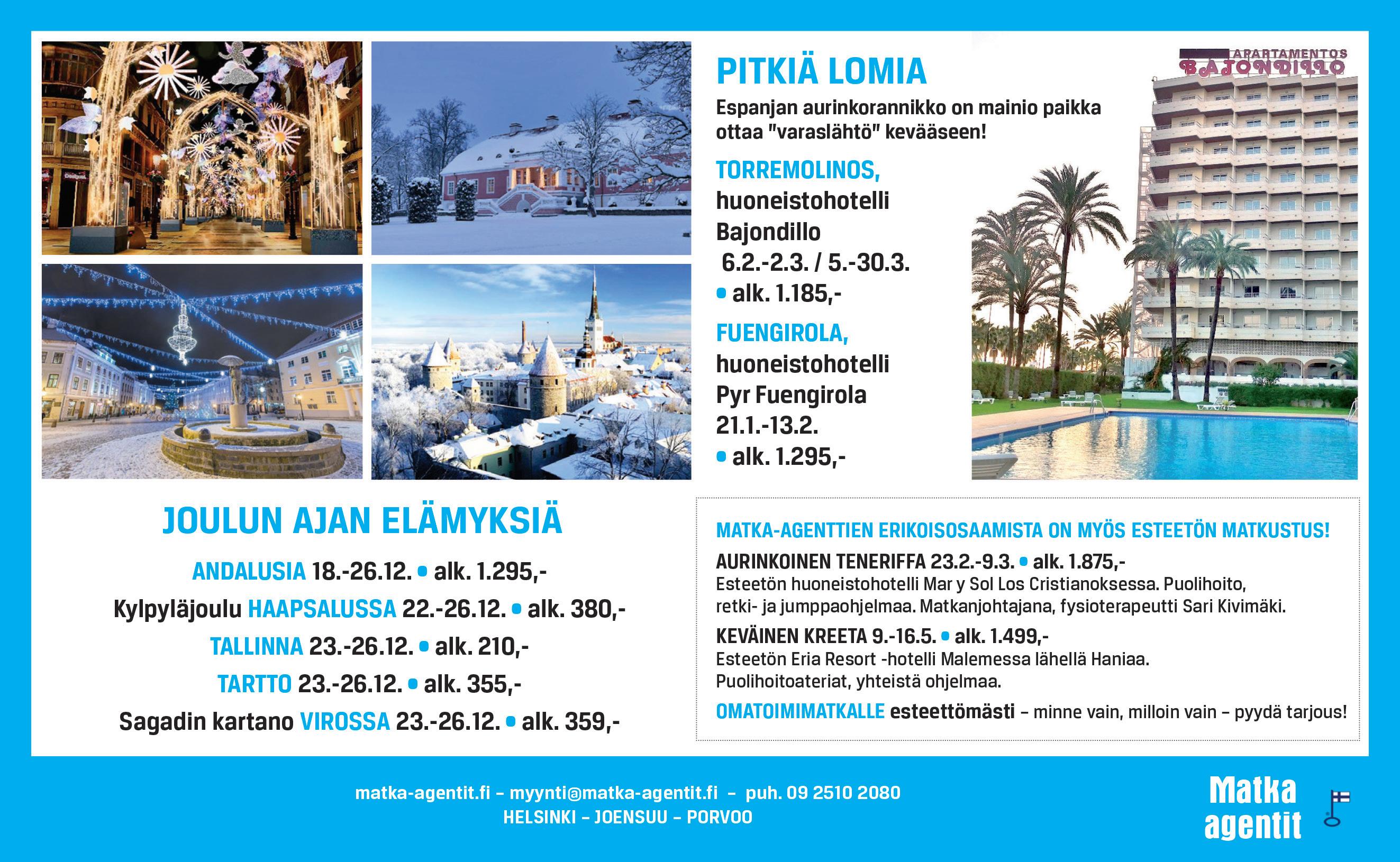 Olen jäsenkorjaaja-hieroja Charlottessa, Pohjois-Carolinassa ja läpeeni suomalainen. Eniten Suomesta kaipaan joulun aikaa. Täällä Amerikan mantereella on kiitospäivä, Thanksgiving, ja se syö ison osan joulurauhasta ja siitä oikeasta tunnelmasta. Lunta ei ole ja kuusetkin ovat aivan liian sym metrisiä suomalaiseen makuun. Onneksi aitoon tunnelmaan pää see Jouluradion kautta, jota kuun telen ja kuuntelutan myös asiakkaillani joulun alla. Ainoa huono puoli on se, että kun Sylvian joululaulu tulee ja kohta ”sinne Suo meeni kaukaisehen”, kyynel nousee silmiin välittö mästi. Silti, tai juuri siksi, se on minulle joulun merkki.