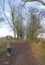 1Take the road signposted for Amisfield past the primary school which dates from 1878 and serves the whole parish. The houses on the left are all that remain of Duncow Village. The first house on the left was the village shop. Follow the road over a little bridge and carry straight on this rising, winding road with the Duncow Estate on your right. Further on you will see the ruin of a late 17th century windmill on your left. Until the beginning of the 20th century the now wooded triangle of land on the right is where cattle and sheep could be rested before being taken down the drove road to Amisfield station and then on to Lockerbie market. The windmill stump on the left is some 30ft high and is built of sandstone rubble. There are two doors, one of which has been blocked up. At the road junction, the field to your right is known as The Gallas Moor (the 1855 map shows it as Gallows Moor) and is thought to be the site of the gallows used for public hangings. Take the junction on the left and, if there are no animals in the field or silage crop being grown, go through the first gate on the left if you want to visit the windmill. The building was used in Victorian times for drying sheepskins. In this field and in the field to the right of the road are Neolithic standing stones which line up with the Cursus monument at Gallaberry. Many of these stones are used by farmers as rubbing stones for their cattle.