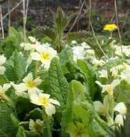 The first native flowers to appear in the woods and hedgerows are primroses, celandines and coltsfoot. Other more delicate flowers are stitchworts, violets and wild strawberry and if you look closely you may find the tiny moschatel, or town hall clock. Later on bigger plants take over - cow parsley, red campion and, in May, bluebells, foxgloves and hawthorn blossom. Hedgerow plants which are less usual in this area are greater celandine and white dead nettle.