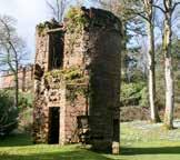 1Go between the handsome twin gatehouses on the left hand side of the road to enter the main driveway towards Dalswinton House. After a short distance you will see the last ruined remains of the original Dalswinton House on your left. A circular stair turret and cellar are all that remain of the early 17th century house. It is worth a short detour to take a better look at the tower.