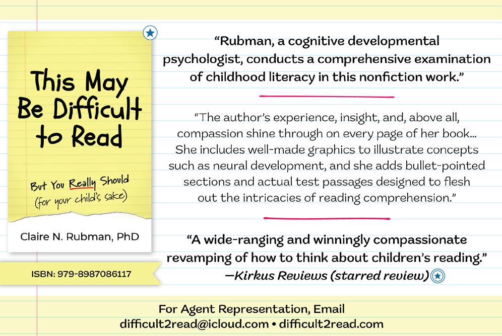 college students enrolls in a remedial reading class in their freshman year. As she points out, statistics like these are nothing new; Americans have heard for years that the systems tasked with building children’s literacy skills are failing. Rubman asserts that the goal of this book is to offer solutions to change this. “Together,” she writes, “we can analyze why, as a society, we seem to be failing to educate our nation’s children and why so many parents obsess so unsuccessfully over this process.” A central concept that runs throughout the book is introduced early: Children acquire their knowledge in their own way. “Remember, their brains are different from our brains,” Rubman writes. “They don’t think, speak, or learn like we do.” As the author explains, this is crucial to remember because, despite many parents’ hopes that their children will take to reading very early (before kindergarten), a child’s brain isn’t finished undergoing the process of myelination, in which neural pathways develop their message-bearing abilities. Allowing that process of natural development to work at its own pace is at the core of Rubman’s revisionist approach to helping kids get the most out of their reading.