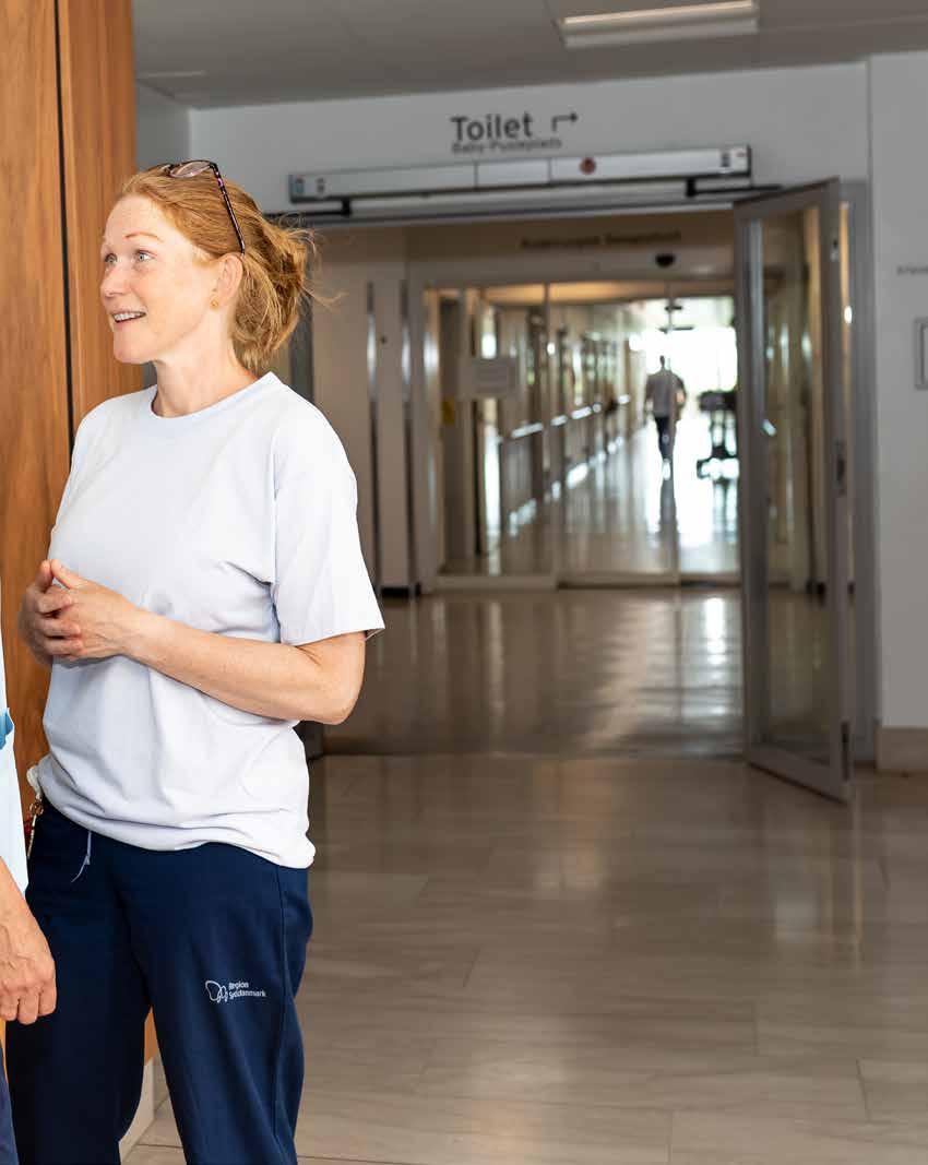 ter hos ressourcestærke patienter, modtager vi i sygehussektoren patienter med længerevarende og ofte mere omfattende problemstillinger, og målet med vores virke er et andet.” Den erkendelse førte til en dybere granskning af, hvad der temperamentsmæssig passede Dorthe bedst sat op imod den faglige udfordring. Konkret vikarierede hun i perioder i privat praksis sideløbende med ansættelsen i sygehussektoren for at mærke efter. Sygehussektoren vandt, ”men jo klart med fordelen af at kende hverdagen, muligheder og udfordringer i privat praksis, sådan at vi kan bruge hinanden bedst muligt.”