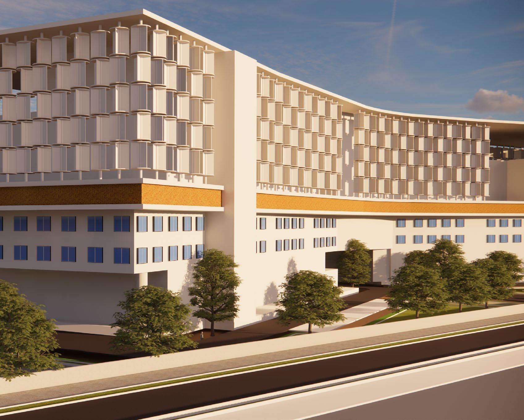 The proposed 500-bed Multi-Speciality ESIC Hospital in Manesar, Haryana, is designed to cater to the healthcare needs of state workers in the region’s industrial hub. This ambitious project aspires to redefine the conventional imagery of hospital architecture by emphasizing warmth, comfort, and a welcoming environment. Hospitals are often perceived as stark, utilitarian spaces that can feel impersonal and intimidating. This design, however, seeks to challenge these preconceived notions, offering a paradigm shift in how healthcare buildings are envisioned and experienced. The goal is to create a space that not only provides state-of-the-art medical care but also fosters a sense of well-being and humanity.