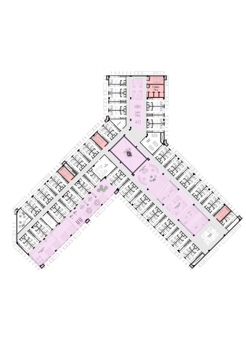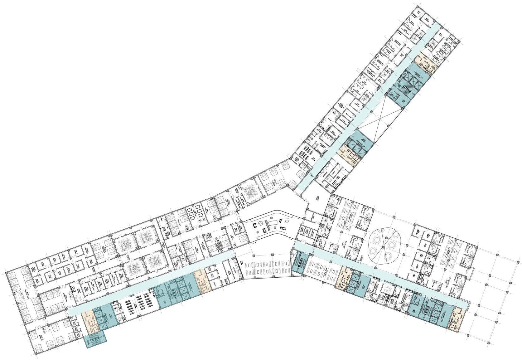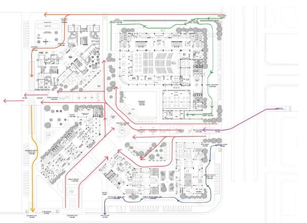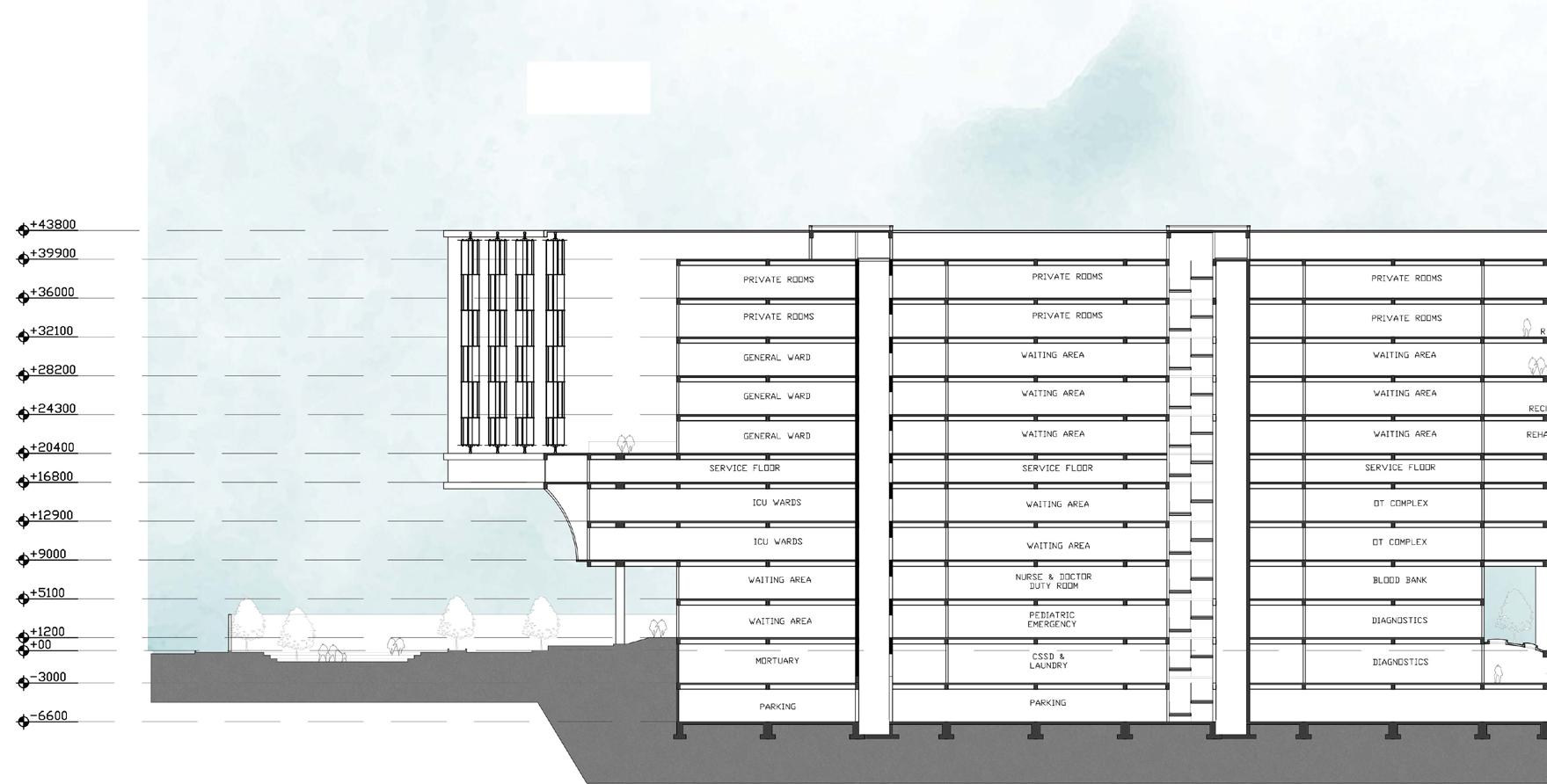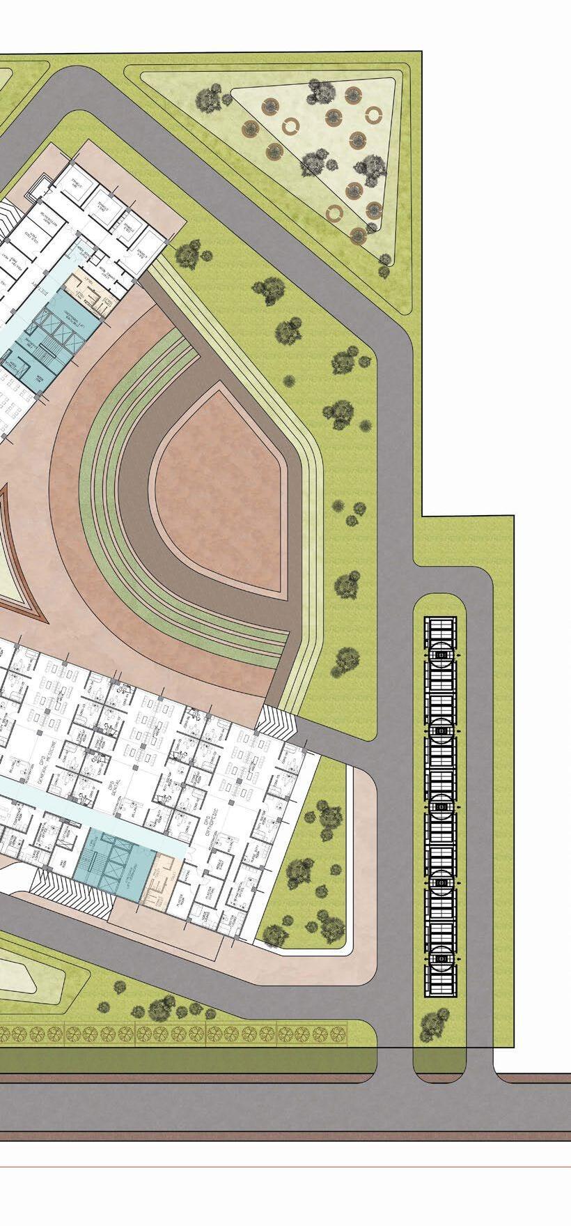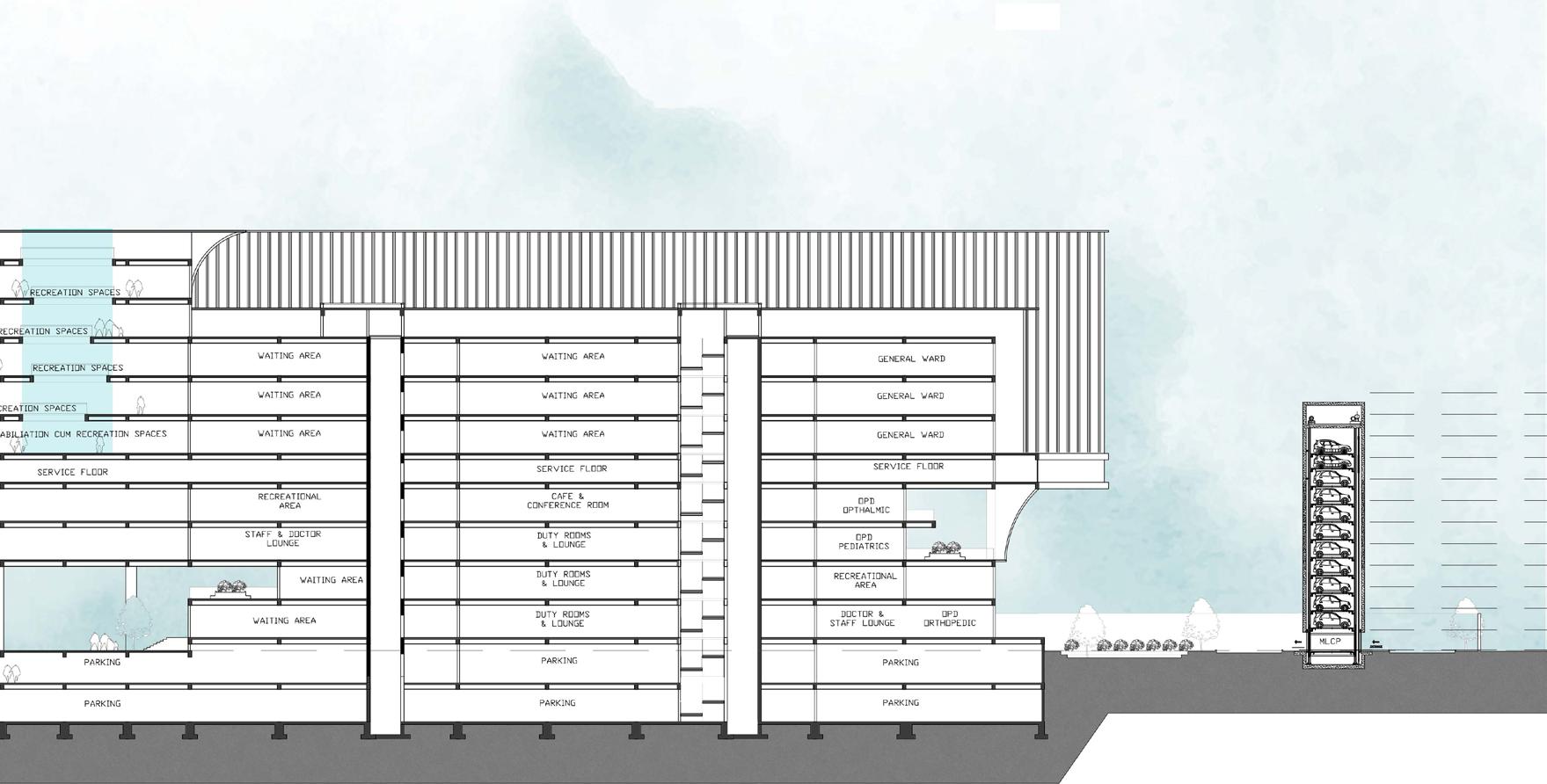 A fire tender path is integrated into the layout, ensuring that the hospital adheres to stringent safety regulations while maintaining seamless circulation throughout the premises. This approach goes beyond mere compliance, demonstrating how thoughtful design can address practical constraints without compromising the spatial quality or aesthetic value of the project. The layout ensures that all areas of the hospital are easily accessible, promoting efficiency and reducing response times during emergencies.