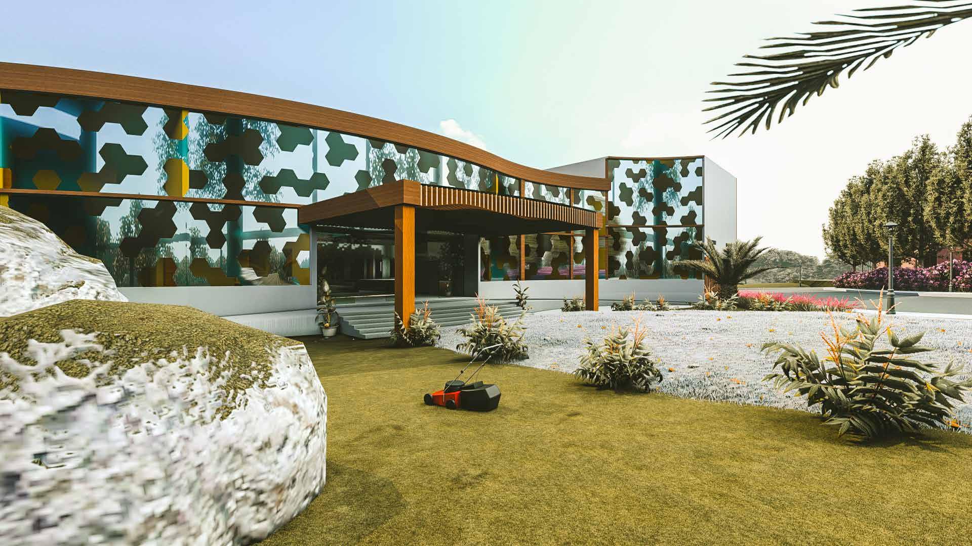 The OTS on the other side is the largest in the plan and has a pond and a tree in the middle of it. It makes the students to blend with nature. The pond is filled with KOI fish which improves the beauty of the OTS.