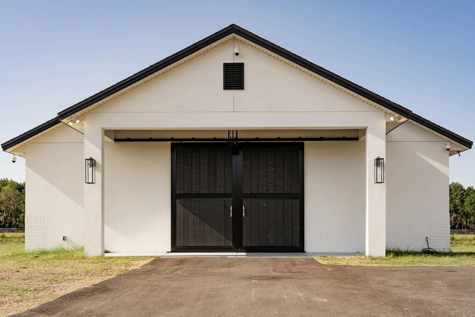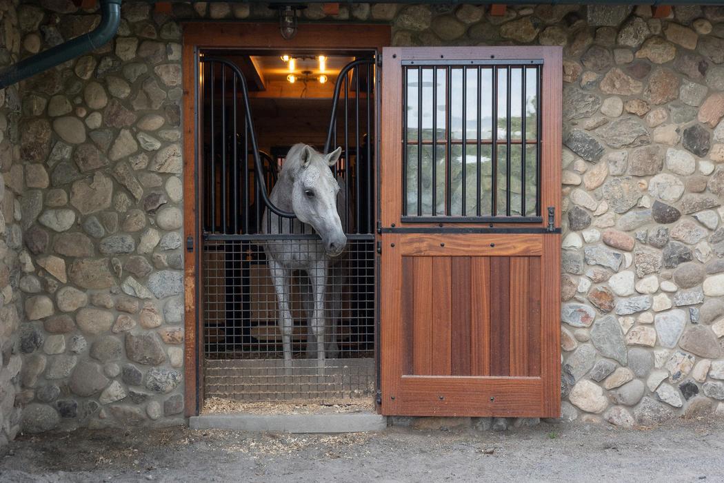 Behind every new horse barn is an equestrian who has been dreaming about the moment when their barn is finally ready. For Melina of MPM Sport Horses, the wait is over. She designed her modern, European inspired barn to be a functional space and gorgeous space. The barn features 5 roomy stalls, a tack room equipped with a bathroom and laundry room, wash stall and a feed/storage room. Melina teamed up with American Stalls to provide a variety of custom products including their stall fronts, stall partitions, exterior barn doors, window shutters, stall mattresses and other accessories.