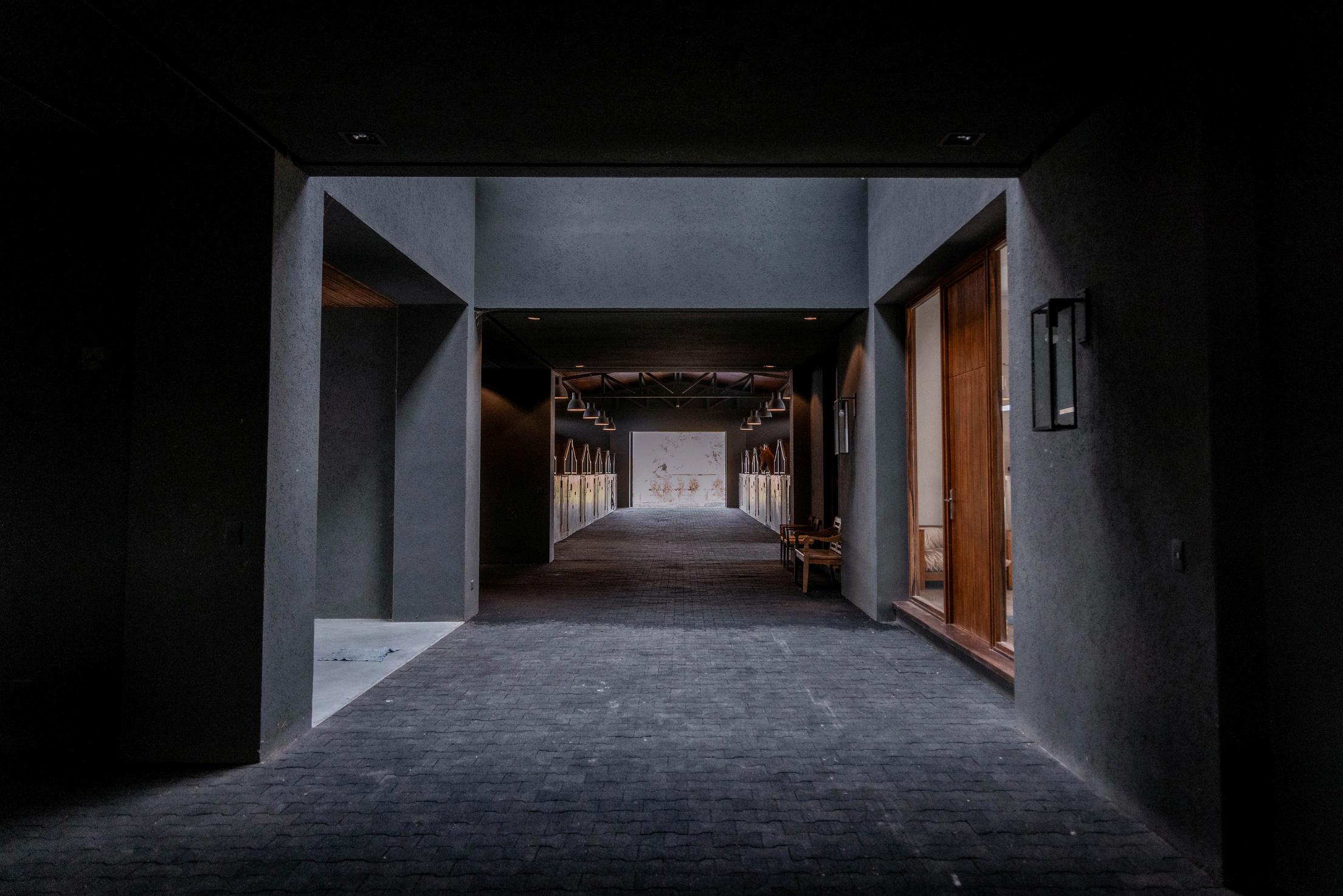 The barn features wide, covered corridors that provide shelter and airflow, even on rainy days These interconnected corridors link the various service areas