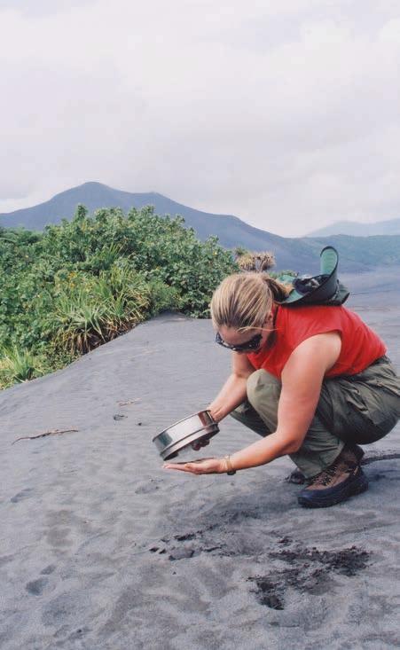 Joni collecting samples from Mount Yasur, Vanuatu